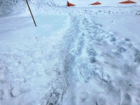 誰も歩いてない所をラッセル、思いの他沈まないで歩き安い。