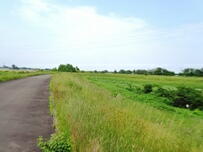 堤防の斜面を少し登ってみたが不安になり引き返す。